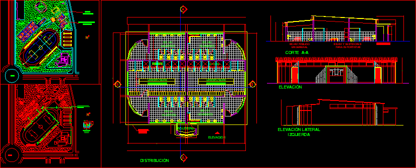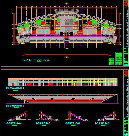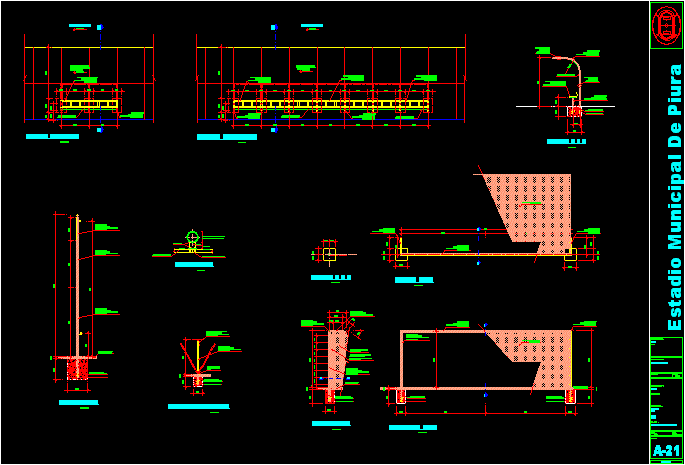 Quishuar Stadyumu -Çizimleri - Ayrıntılar Quishuar Stadyumu - bitkiler - bölümler |