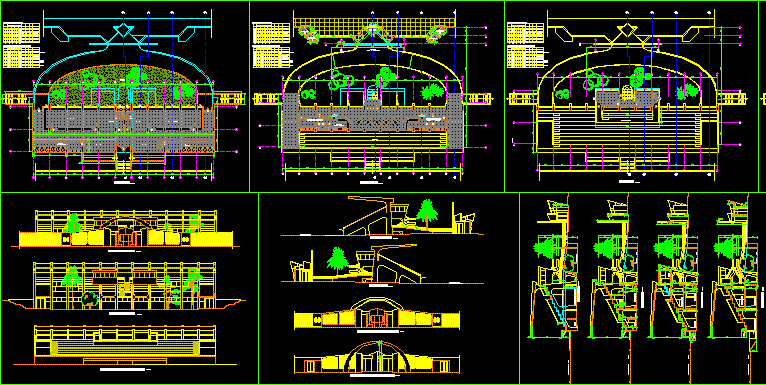 Gimnasium -Çizimleri - Ayrıntılar Gimnasium proje - bitkiler - bölümler |
