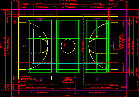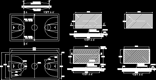 Ayrıntı Basketbol Sahası Ayrıntı katmanları ve isoptica - basketbol sahası enine ve boyuna kesitler |
