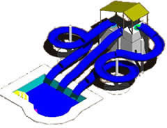 Sıçrama tahtası ve kızak acuatic park için Tasarla Tasarım 3 farklı kızaklar ve onlar için bir sıçrama tahtası |