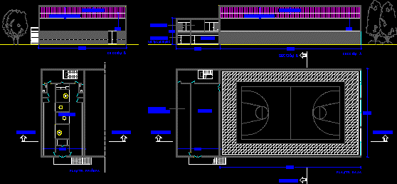 Kapalı multicourt Kapalı çok saha - mevduat - depo - soyunma odası - tesisi - yükseklik-bölümler |