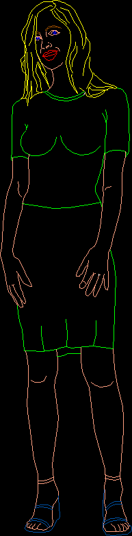 Twiggy 2003-2d Archivo DWG de bloque tr 2D de mujer parada tr elevación ön para utilizarse tr elevaciones y secciones (fachadas y cortes) |