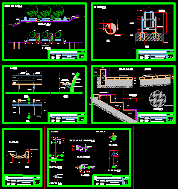 Alameda peyzaj tedavi Archuitectonic - bölümleri - yükselmeler - yapıcı ayrıntıları ve temel uçak uçak |
