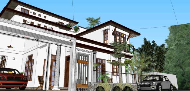 Modern villa 3d Dokular ile 3D modeli - Sketchup modelleme- |