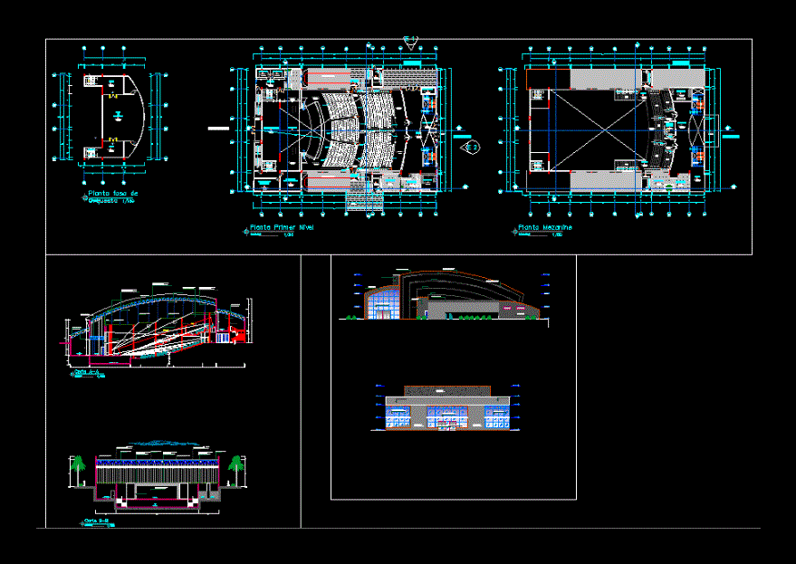 Konferans Salonu Proje kat planları, bölümler ve yükseklikler bulunmaktadır. Sırasıyla ayrıntılı. |