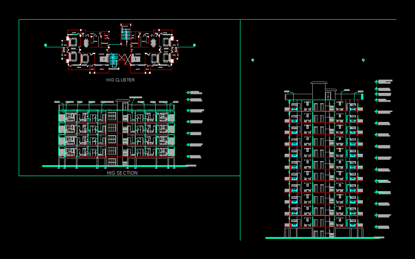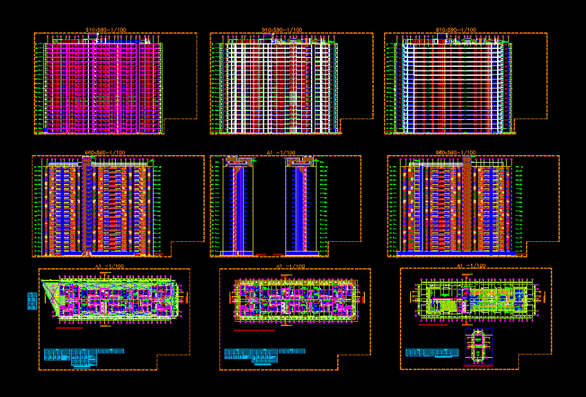 Blok daireler Blok daireler ile bölümler ve çift yönlü düz tipoloji - bitkiler - bölümleri - cephe - temel kazık - yapısı |