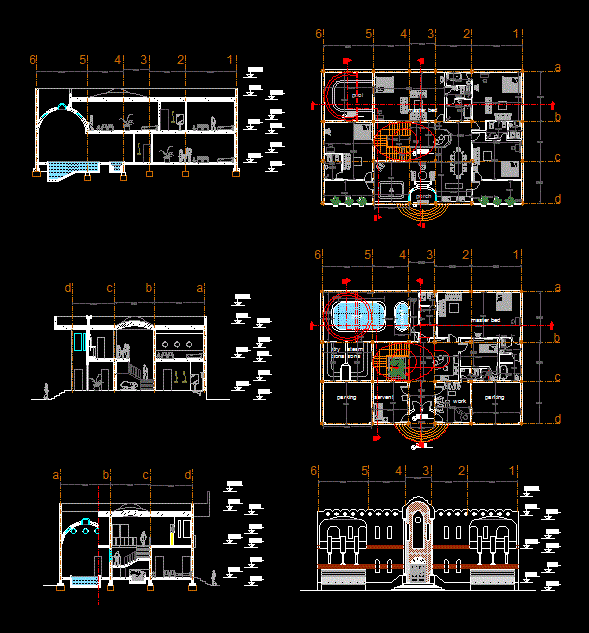 Merkezi gün Planları keser ve cephe ve ilgili mimari plan ve yaklaşım plaka planını ayarlayın. |