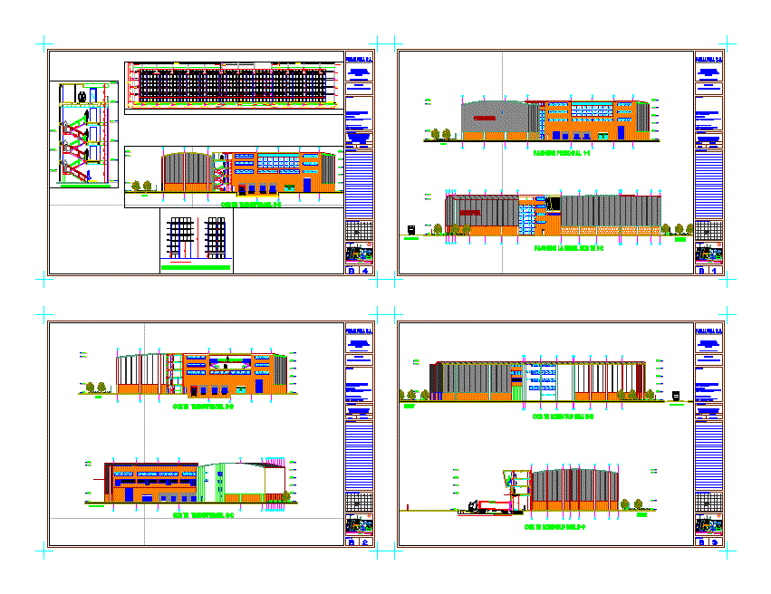 Ambar ve ofisler 15 metre ve ofis binası mimari bitkiler, kesim ve yükseklikler ile 5 kat cellar |