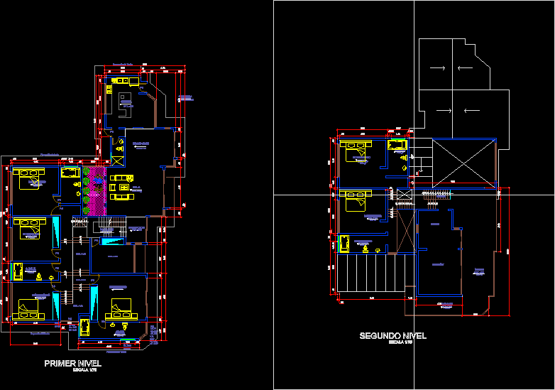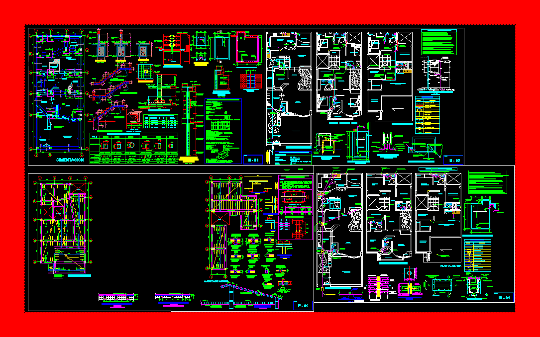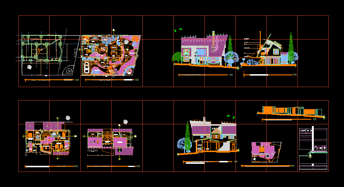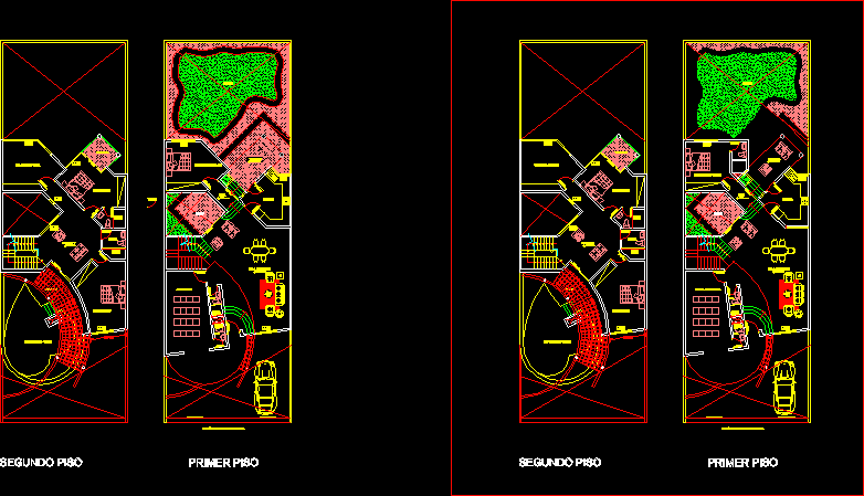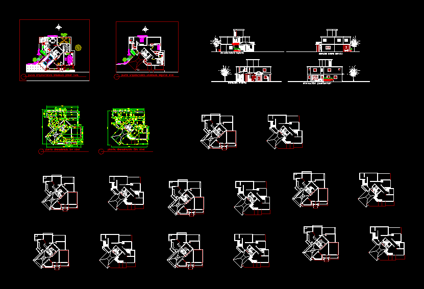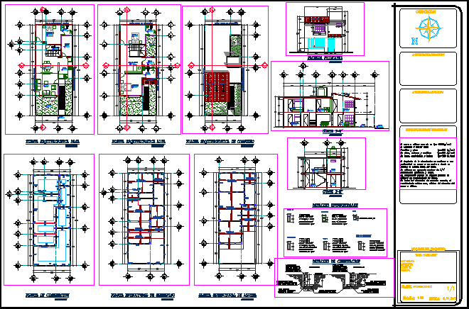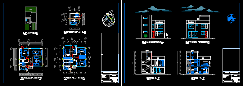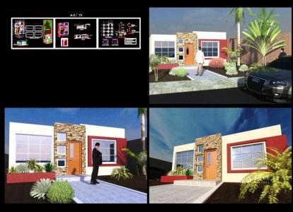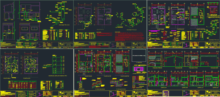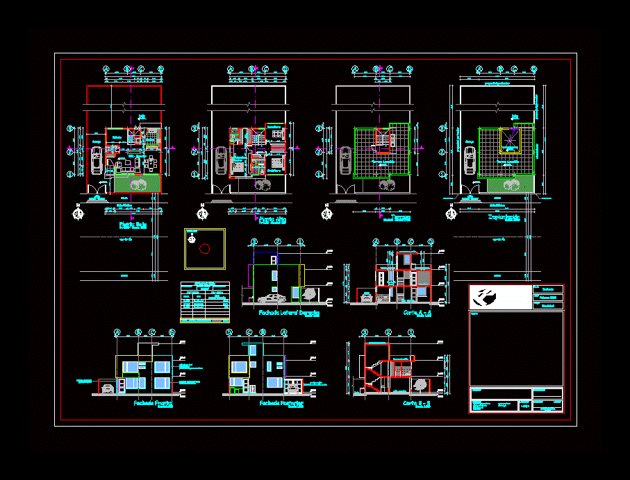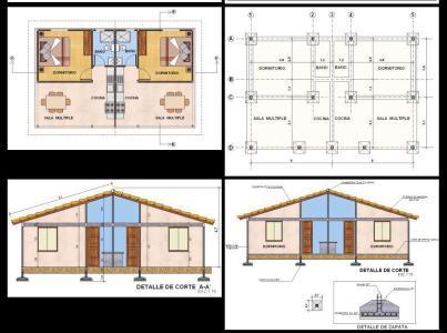 Konut bifamiliar Konut Bifamiliar: Bitki, ayrı girişleri ile iki aile başına tam bir ev iki katlı ev. Kesim, yükseklik ve çatı planı içerir. |
