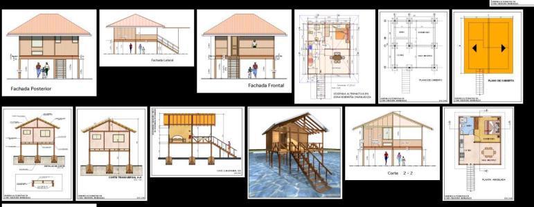 Turistik restoran Düzey blueprint restoranda, bu alan adobe saz ve Guayaquil gibi malzemeler kullanılarak yapılandırılmış. kesim, yükseklikler ve ayrıntıları yere sahip. |