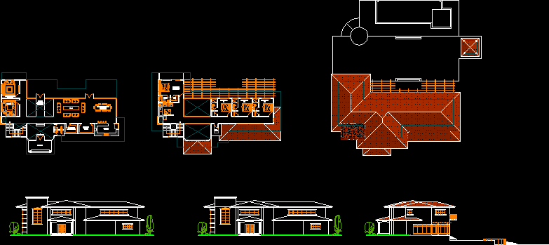 Ev Oda sosyal, ev, 3 yatak odası, çalışma, 3 banyo ve yarım banyo ile konut mutfak, servis yarda, oturma odası ve yemek odası. Mimari planlar, bölümler, cephe ve yapısal çizimlerini temel, asma kat ve çatı yanı sıra inşaat içerir |