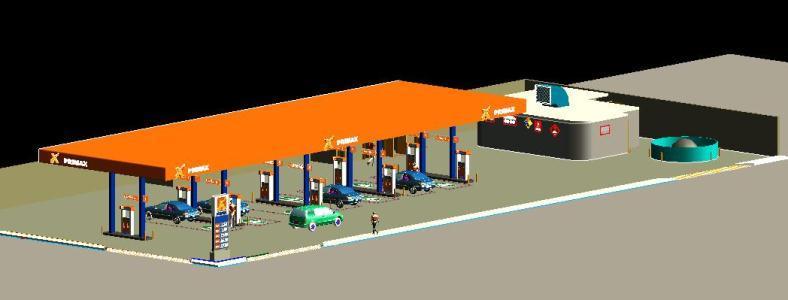 Servis istasyonu 3d Doğalgaz ve LPG dağıtıcıları metal çatı, kat insanlar, arabalar ve Binalar için 3D servis istasyonu. |