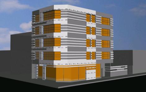 Multifamily konut 1, zemin kat bölümlerinde mağazaları ile bina 2 nd, 3 rd zemin ve zemin bağımlılık. bitki sayısı keser ve 2D perspektif dosya vardır |