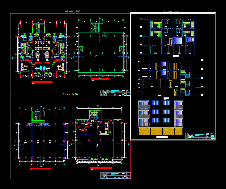 Edificio multifamiliar Planta - cortes - manzaralar |