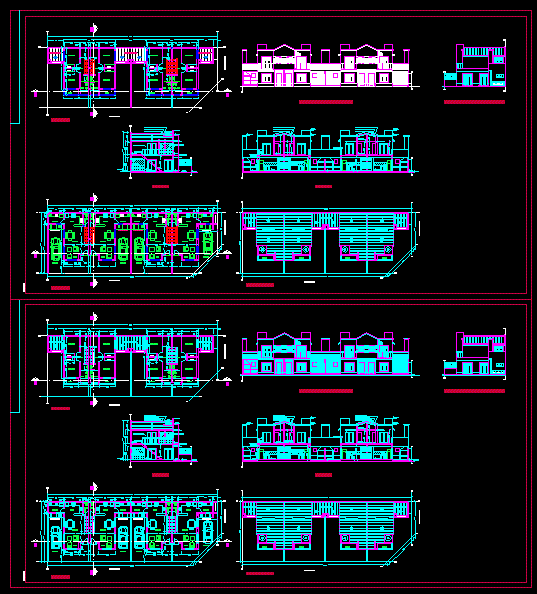 Evleri Çift yönlü 2 - bitkiler - bölümler - cephe - boyutları - belirtme düzeyleri |