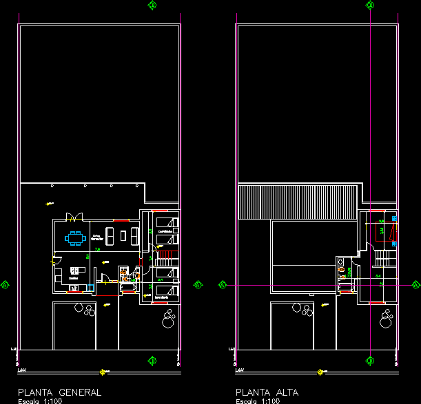 Konut bifamiliar Fakültesi Mimarlık şehircilik - UNSA Cortes planları, yükseklikler, vaziyet planı. İki müstakil ev |