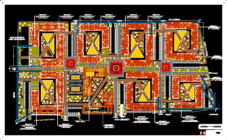 Karmaşık konut Üniversitesi proje üzerinde kırsal bir bölgede, katmanları A, B, C, D bir alan ile kentsel bir kıyafet? yaklaşık 8 hektar, rekreasyon alanları, hizmetler, ticaret ve mahalle parkları ile. -Planimetries - parsel - tam |
