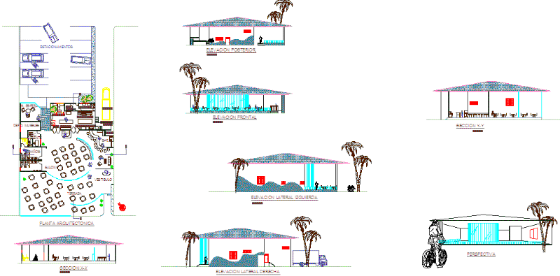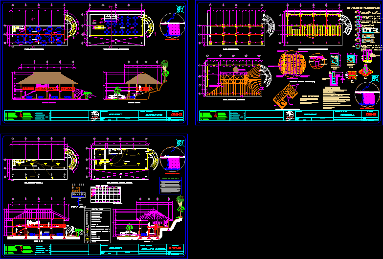 Restoran Komple planları bir restoran tarzı Beach palapa kaplı. mimari planlar, yapısal ve yükleme. bitmiş |