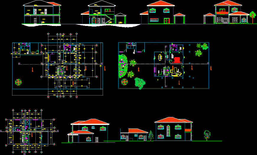 Konut Yapı bir villa tam planları ile yükselmeler ve tüm veri bölümleri bir müddet bu. |