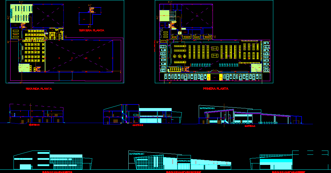 Eğitim Merkezi Planları, kesitler, yükseklikler |