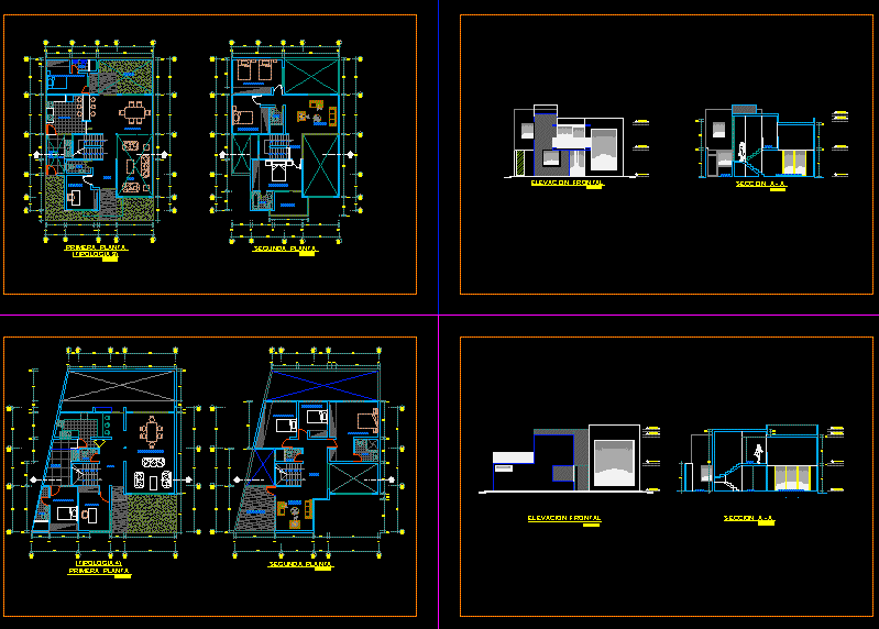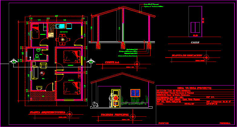 Bir aile konut san juan DOSYA UZANTISI DWG İLE GÖSTERMEK KONUT İKİ SEVİYE VE ÜÇ YATAK ODASI TASARIMI |