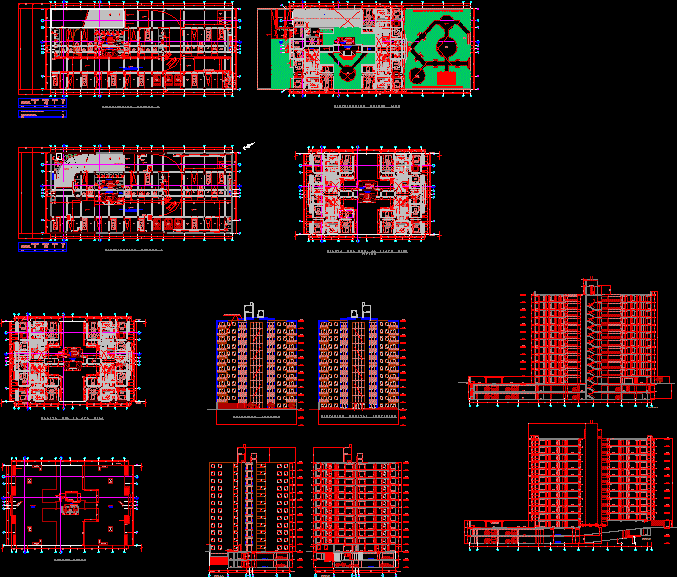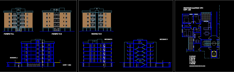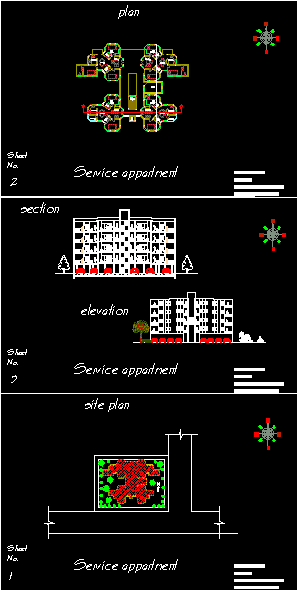 Proje konut kat mülkiyeti Proje konut condominium daire ve konut ile projeyi dahil implantasyon zemin kat, bölümler ve cepheler |