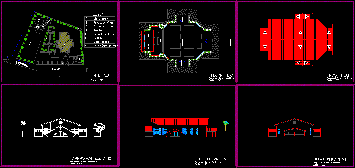 Kilise Site planı kat planları ve yükseklikler |