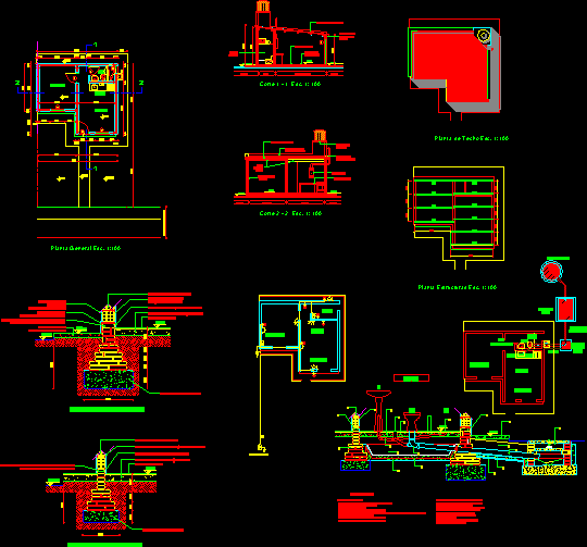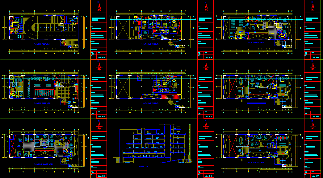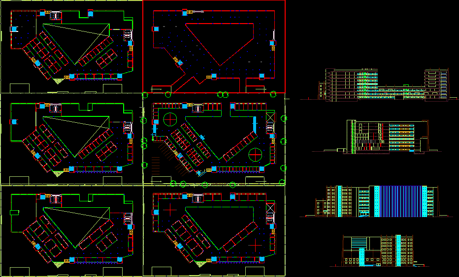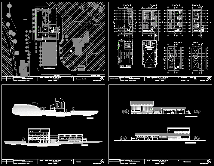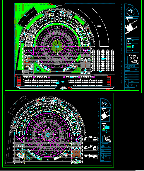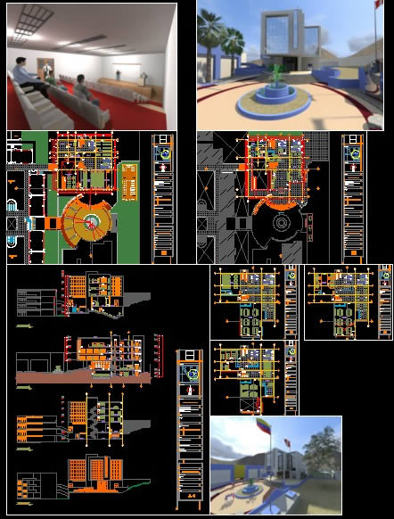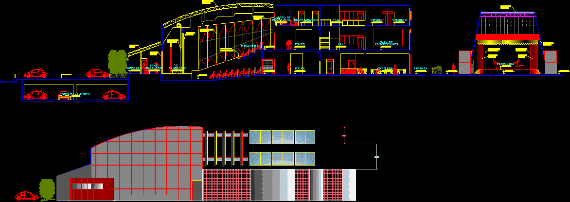 Auditorio; Cortes Corte de auditorio y elevación... para teatro conferencia |