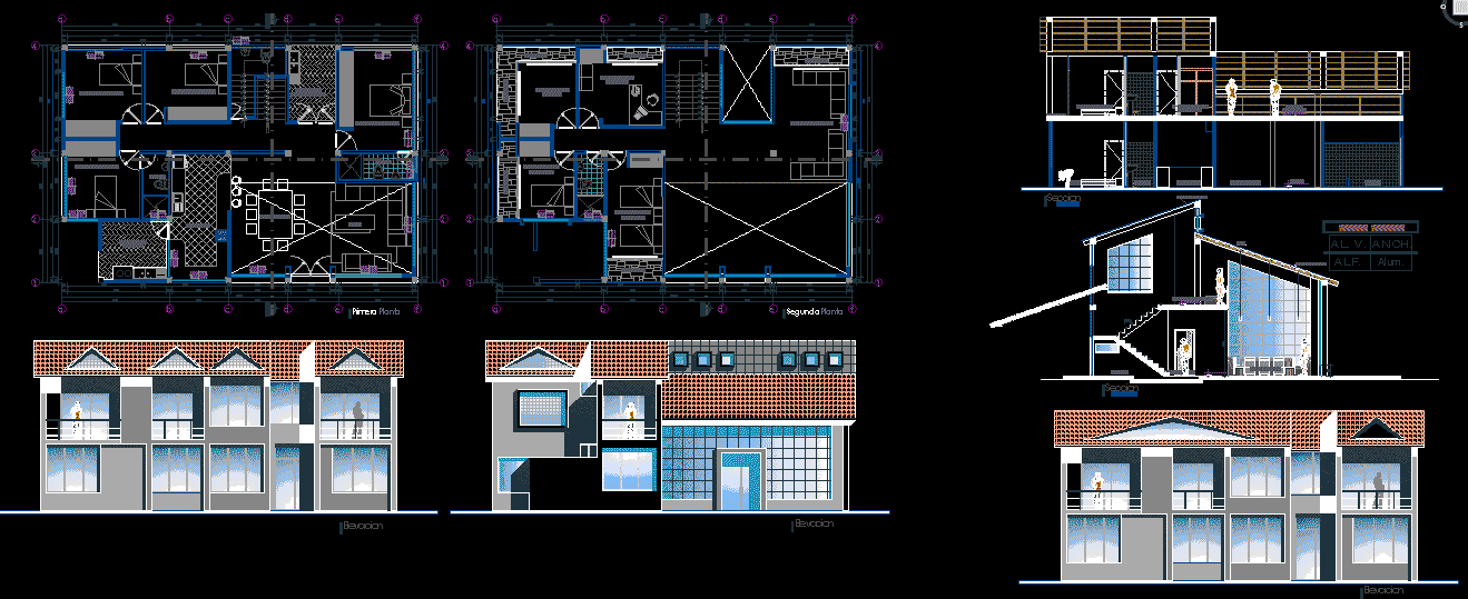 Ortak bölüm Proje ile Elektrik Tesisatı, sıhhi tesisat, hidrolik, gaz, Klima ile hesaplama farklı İmkanlar, izometrik ve ayrıntıları contructed, çift kat daire bir dizi oluşur. |