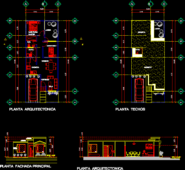 125m 2 tek ev Dosyanın 125 m 2 bir evin komple mimari planları oluşur. 3 yatak odası, iki banyo, mutfak ve Çamaşırhane, Oda - yemek odası ve mutfak garaj yanı sıra vardır. Planları da bölümler, cephe ve planları marangozluk planimetry içerir. |