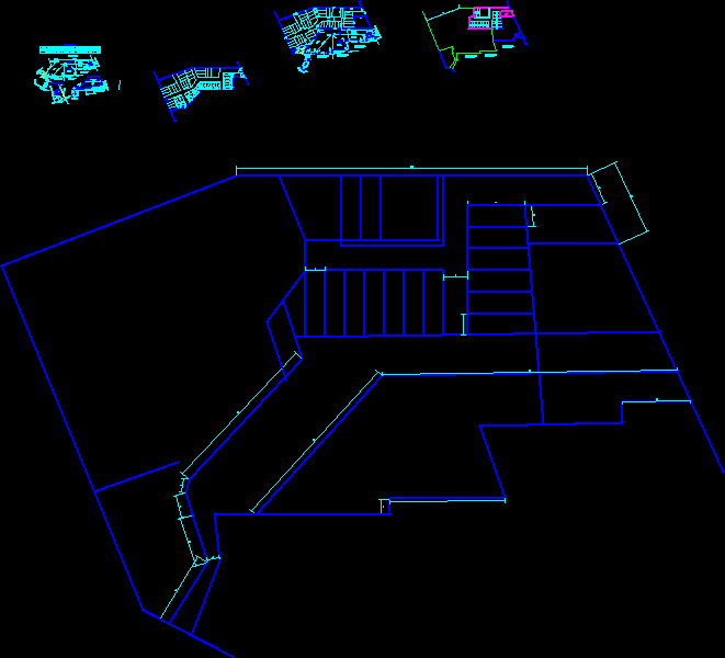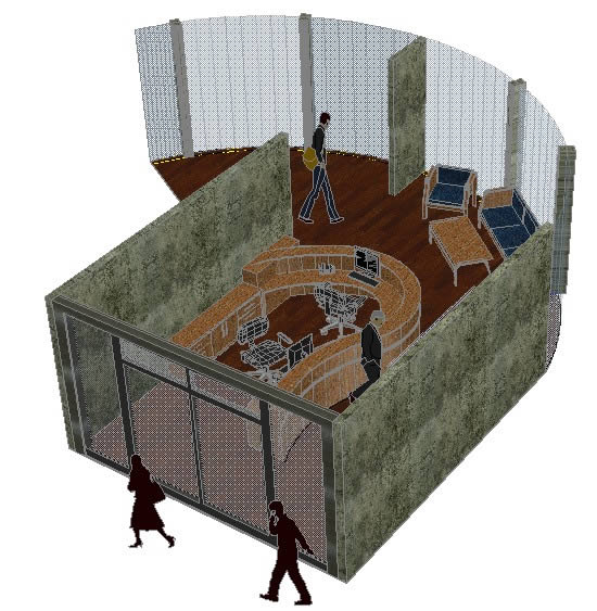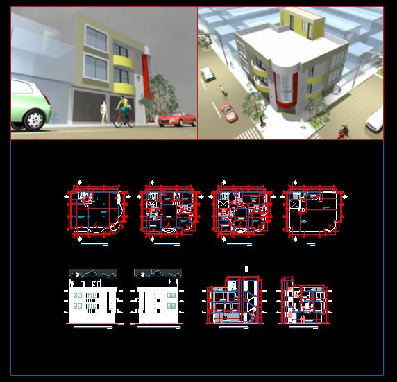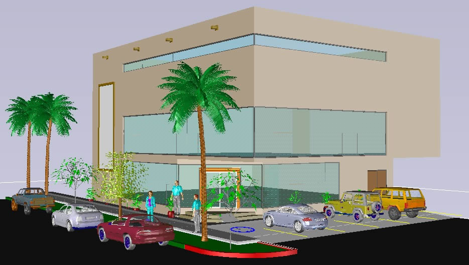 3D kumaş deposu 3D Autocad 2012 mimarisi, La Paz, 3 düzeyleri, kumaş deposunda 3D ve 3D bitki örtüsü, 3D insanlar arabaları Park. |