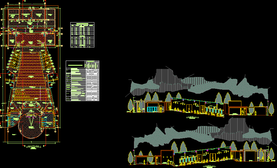 Auditorium sahne top sahası saha bitki render mimari cepheler otopark Bodrum ile top ve kesme |