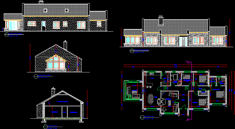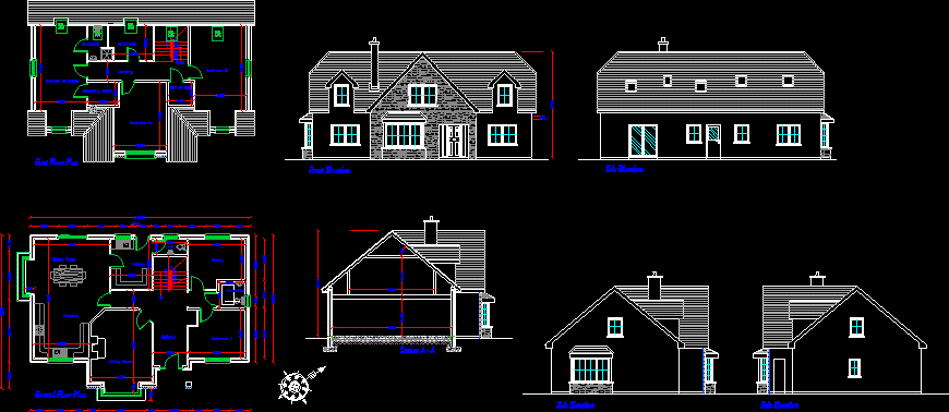Aile konut Aile ev anket. Üç Yatak Odası, mutfak ve yemek odası vardır. Proje tabanı ve cepheler kesim vardır. |
