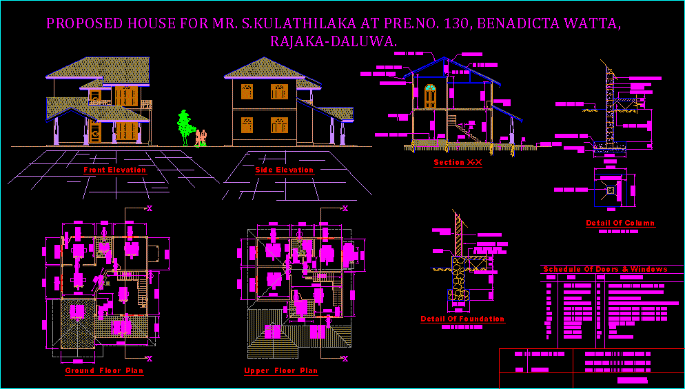 Konut tasarımı Sri Lanka tasarım evi. Konut Sri Lanka yaygın bir türü. (Nuwan Sudharshana weerathunga) Önden Görünüm, yükseklik, Bölüm |
