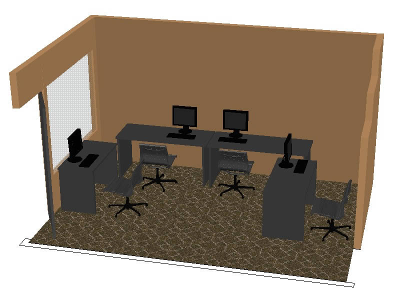 Oficina 3d Cuatro escritorios y 4 sillas renderizadas |