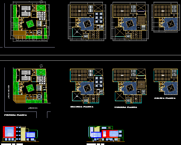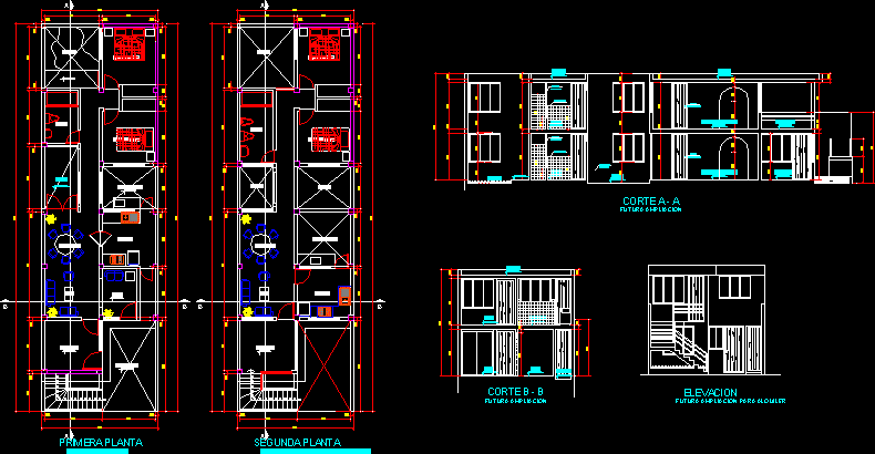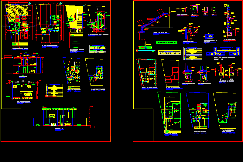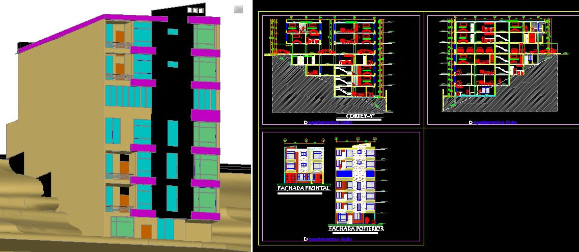 Matriz - edificio multifamiliar palno de detalles de edificacion de 2 pisos |