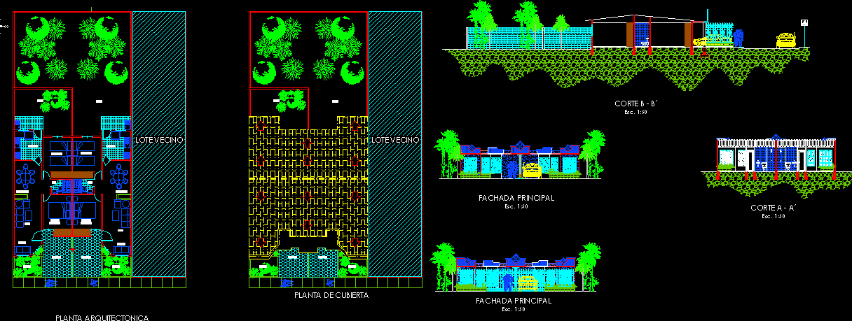 Dibujo corporation Corporación, Dibujo de BM bungalov incluyendo el plano de la planta baja, planta primera, planta de terraza, dos secciones y una elevación, y tambien los demás requisitos necesarios. |