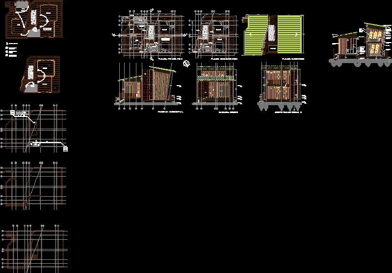 Ahşap ev ara Ahşap ev Chanul öngörülen, dosyayı 2 kesim ve 2 cepheler, yapısal ve elektriksel çizimler drenaj ile döşenmiş 2 katlıdır. |