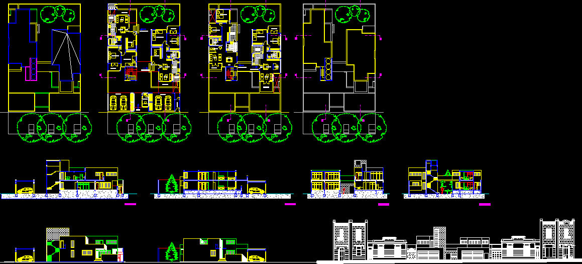 Proje konut Architectonic uçakları ile 2 düzey konut - bitkiler - bölümler - cepheler vb - yapısal uçak - teçhizatları-Ayrıntılar vb, |