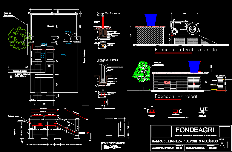 Petrol rampa traktörler için Yıkama ve traktörler için rampa ile petrol yağlama - cephe - bölüm - yapı - bitki rampa |