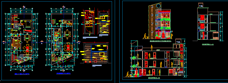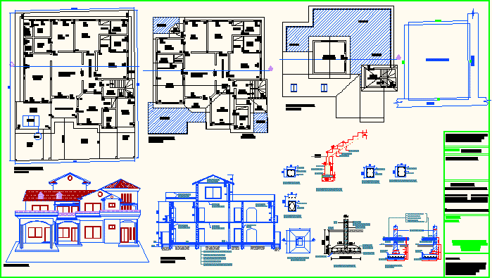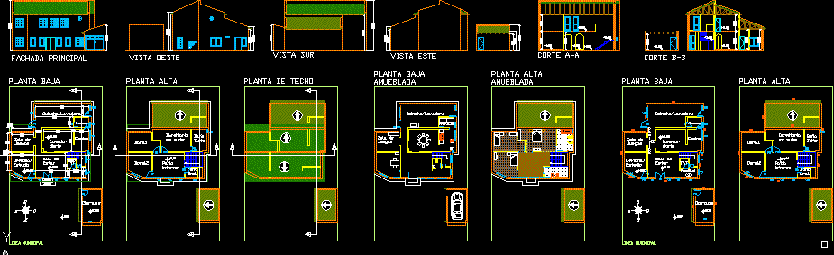 Konut Arazi 15x7ms bir düzey yanları açık garaj ve Bahçe ile konut, yemek odası mutfak iki banyo Servisi veranda tamamlamak ve iki yatak odası - bitkiler - Teras plnat - bölümleri boyuna ve enine - bitki temel - izometrik sayısı |