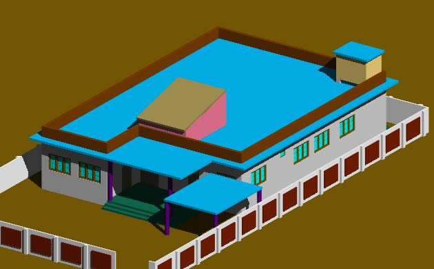Okul tamamlandı Planı - yükseklik 3B Görünüm |