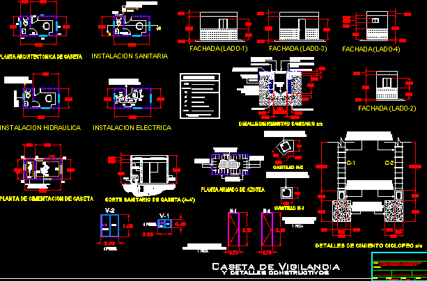 Kulübe gözetim Bitki - bölümleri - çizim ^ tesisi - sıhhi kesitler, elektrik, hidrolik ve yapıcı ayrıntıları |