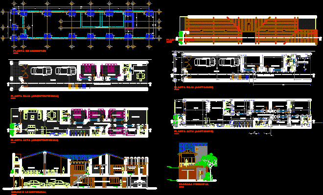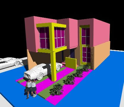 Plajda tek konut Proje - tek çift yönlü konut küçük arazi - Beach El Pinar - Canelones - Uruguay - 3D - bitkiler - bölümler |