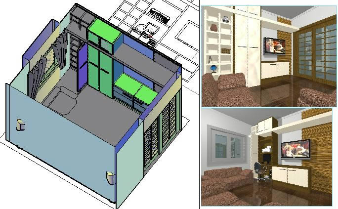 3D yaşayan iç- İç Oda ve yatak odası çok yaşayan |