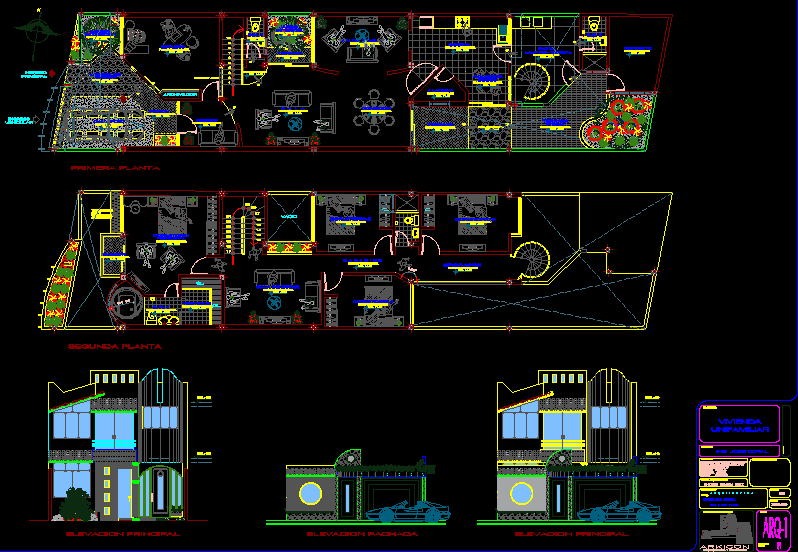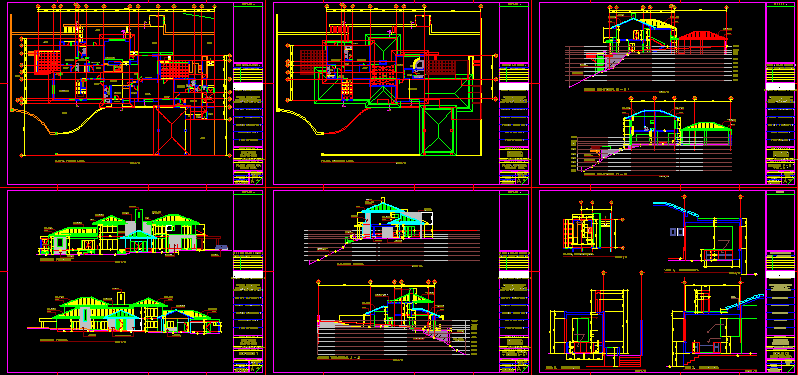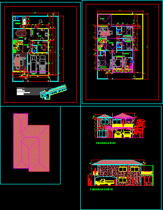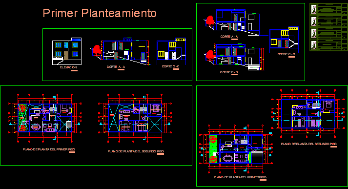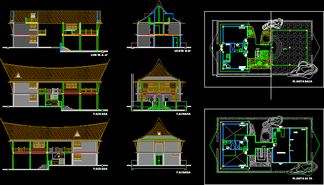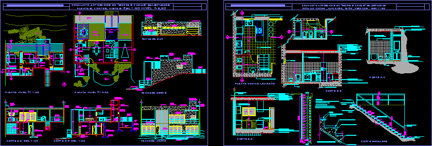 Barrientos residence Mobilya bitki ilk düzey-mobilya bitki ikinci düzey - arka ve ön yükseklik - Lateral bakış açısını ve kısım A-ASections B-B ve C-c Barbekü ayrıntıları |