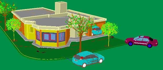 Ev perspektif - gioacchi Konut - sanal maket kullanılan örnek için ayıklanan ağaçlar, arabalar, tasarım, vb gibi. |
