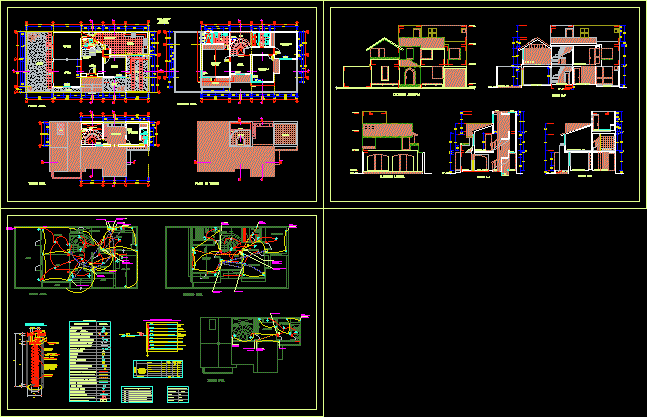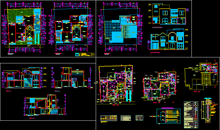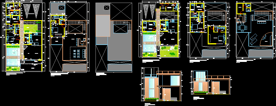 Aile konut İki bölüm - bitkiler - bölümleri - cepheler |