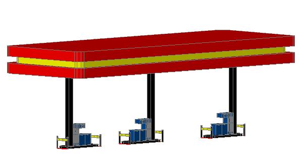 Benzin istasyonu çizgisel 3 ağızlı - kabin - 3d benzin istasyonu 3d - çizgisel 3 bardak uçları kabin |