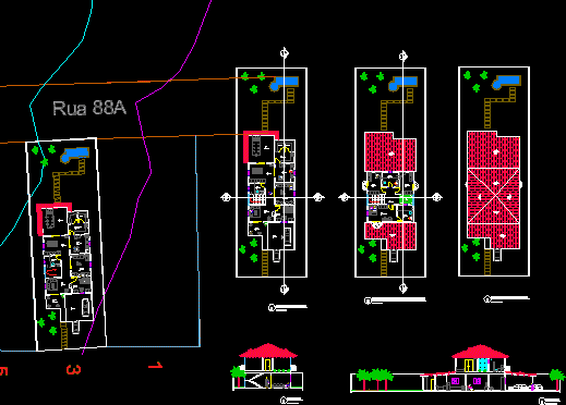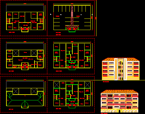 Çok aile konut-tesisi - yükseklik Çok aile konut üç düzeyleri - bölümler |